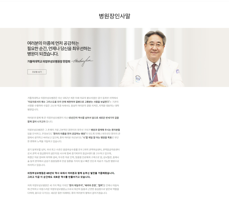 📌 핵심 가치: 생명존중, 전인치유, 사랑과 봉사, 진실성, 전문성