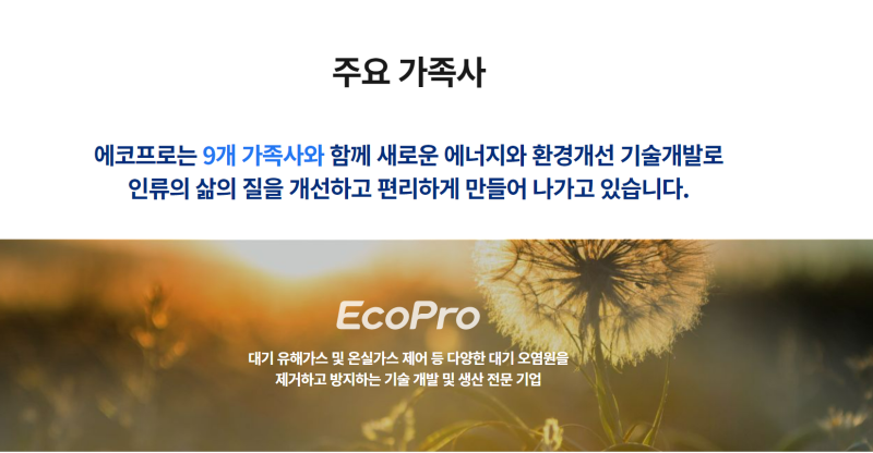 • 핵심 가치: 혁신, 품질, 상생, 환경