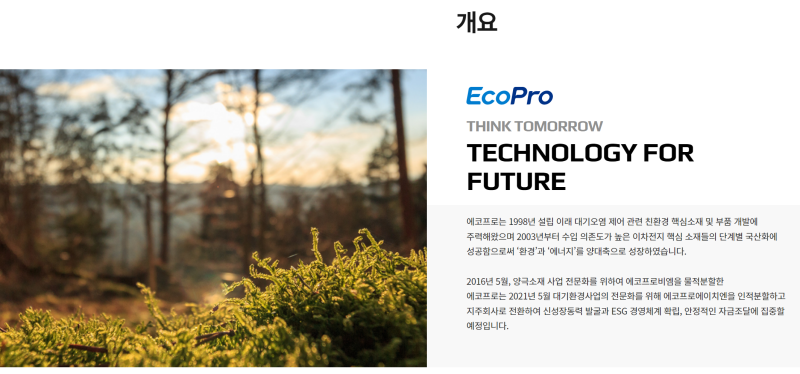 에코프로는 ESG 경영을 실천하며 사회적 책임을 다하는 기업입니다. 또한, 기술 혁신을 통해 미래 시장을 선도하고 있습니다. 여러분의 많은 관심과 지원 부탁드립니다!
