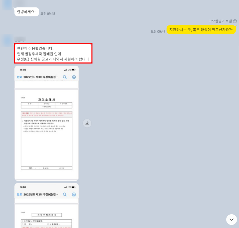 지원자 내용 요약: 지원자분은 평소 우편 서비스에 대한 관심이 높았으며, 집배원의 책임감 있는 모습에 감명받아 지원했다고 작성했습니다. 입사 후에는 고객에게 친절하고 정확한 서비스를 제공하는 집배원이 되겠다고 포부를 밝혔습니다.