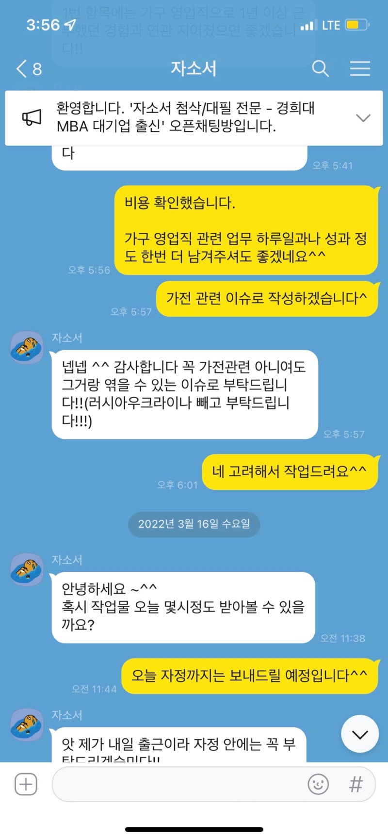 ✨ 모든 기업 자소서 첨삭, 작성 대행, 대필 가능합니다!