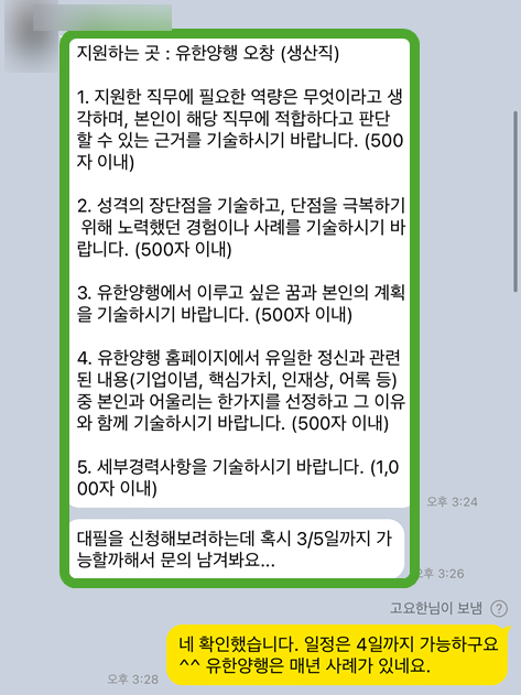 유한양행 합격 자소서, 이렇게 쓰면 쉬워요! 자소서 컨설팅 대필 후기 공개