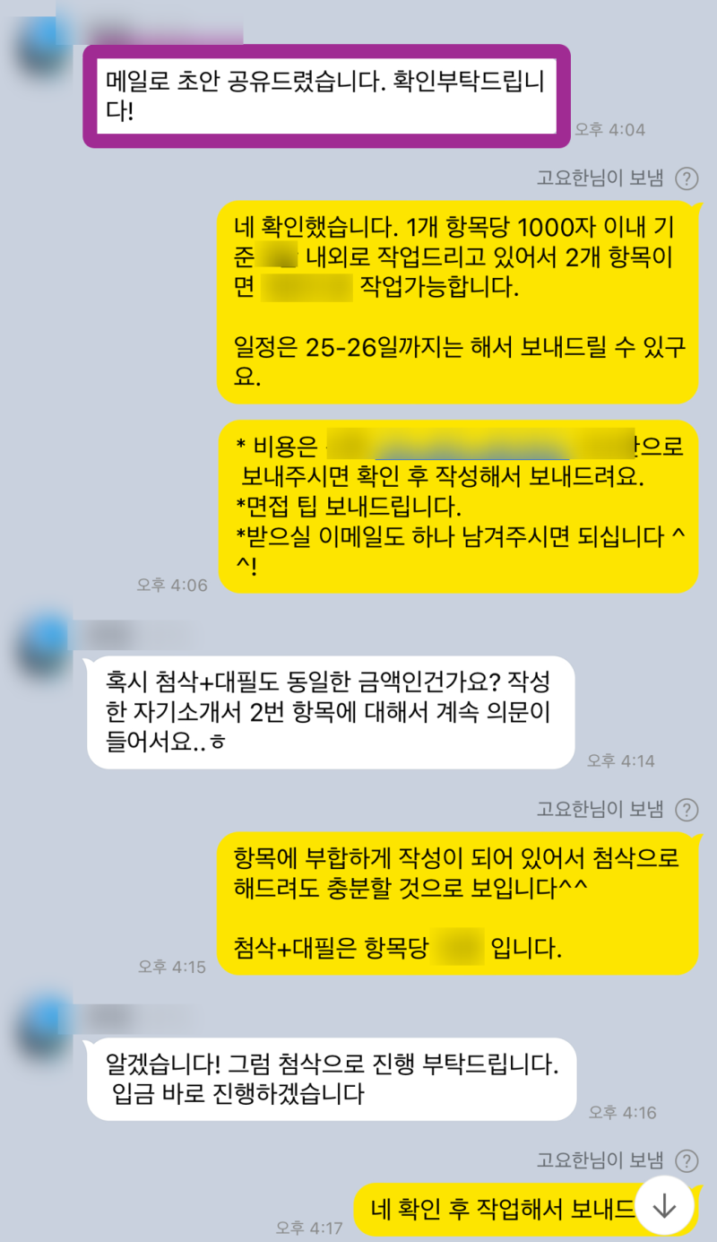 자기소개서 첨삭, 대필, 면접 컨설팅 등 취업에 필요한 모든 서비스를 제공합니다. 1:1 맞춤 컨설팅을 통해 여러분의 강점을 극대화하고, 약점을 보완하여 합격 가능성을 높여드립니다.